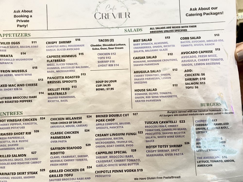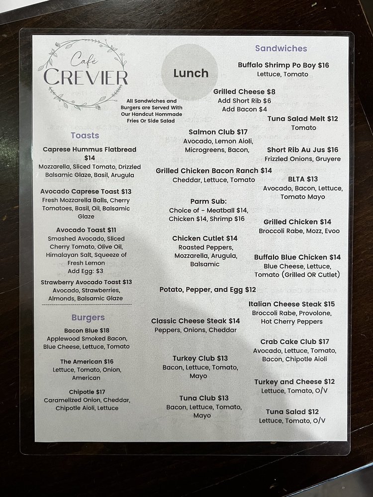 Located in Denville, NJ, Cafe Crevier offers a diverse menu spanning salads, breakfast, brunch, sandwiches, and more. The cozy eatery provides delivery and takeout options, outdoor seating, and attentive waiter service. Customer reviews praise the thin crust pizza, flavorful chicken piccata, and delectable Sweet Cups of Spice pie. The owner, Nick, is known for his warm hospitality and the classy yet casual ambiance of the restaurant. The menu caters to a variety of tastes, with options like rice balls for non-pizza lovers. With a spacious interior adorned with charming decorations, Cafe Crevier promises a fast, friendly dining experience. It is a family-owned establishment that aims to provide a culinary journey filled with delicious flavors and top-notch service.